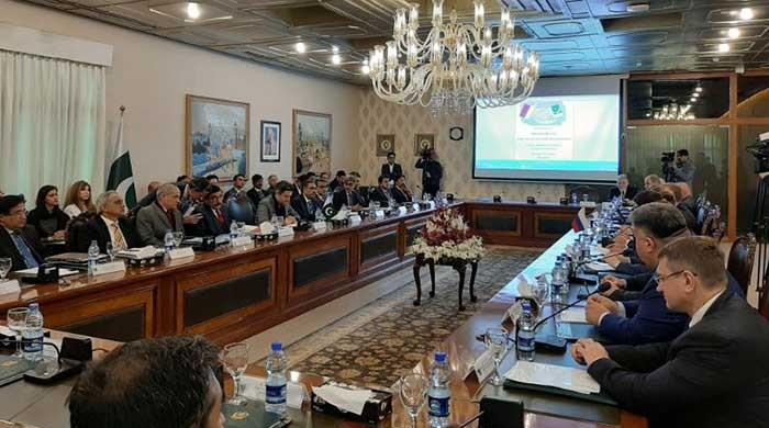 Photo: Foreign OfficeRussia on Wednesday said it is willing to expand cooperation with Pakistan on multiple fronts, including the industrial sector, agriculture, energy, medicine and railways, Radio Pakistan reported.The remarks were made by Russian Trade Minister Denis Valentinovich during the sixth meeting of Pakistan-Russia Inter-governmental Commission on Trade, Economic, Scientific Technical Cooperation at the Foreign Office in Islamabad.Later, while addressing a joint news conference along with Pakistan’s Minister for Economic Affairs Hammad Azhar, Valentinovich recalled that Pakistan Steel Mills was established with the cooperation of Russian experts. He said that Russia is willing to help Pakistan again in order to revive the steel mills and improve its productivity.The Russian minister also expressed interest in "building geological capacity of Pakistan apart from building North South Gas Pipeline". Furthermore, he said that Moscow wants to cooperate with Islamabad in aircraft manufacturing sector. Azhar, the minister for economic affairs, said that Pakistan desires to transform its relations with Russia into a strategic partnership. He said that there are tremendous opportunities to enhance cooperation in the fields of trade, business to business relations and people-to-people contacts.In their meeting, both the countries resolved to increase bilateral trade and bring it to its “true potential through greater cooperation and enhanced business activities”.The Russian delegation also invited Pakistan to organise a road show in Moscow which will provide an opportunity to Russian companies to explore new avenues of investment in Pakistan. Meanwhile, the Pakistani delegation extended an invitation to Russia to participate in trade expos held in Pakistan.The 7th session of intergovernmental Commission will be held in Moscow on mutually agreed dates.