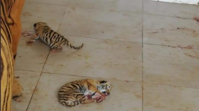 People flock to Peshawar Zoo to catch a glimpse of newly born tiger cubs