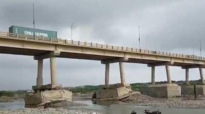 Three pillars of the bridge — built near Hub Chowki in Balochistan — suffered high damage due to rains
