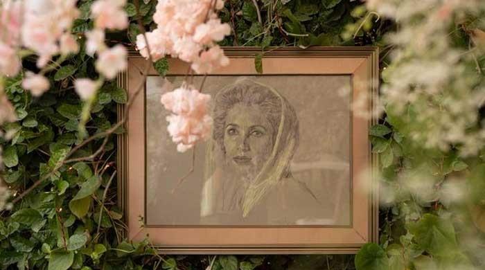 The sketch, encased in an elegant wooden frame, was placed prominently in some of Bakhtawar's engagement photographs