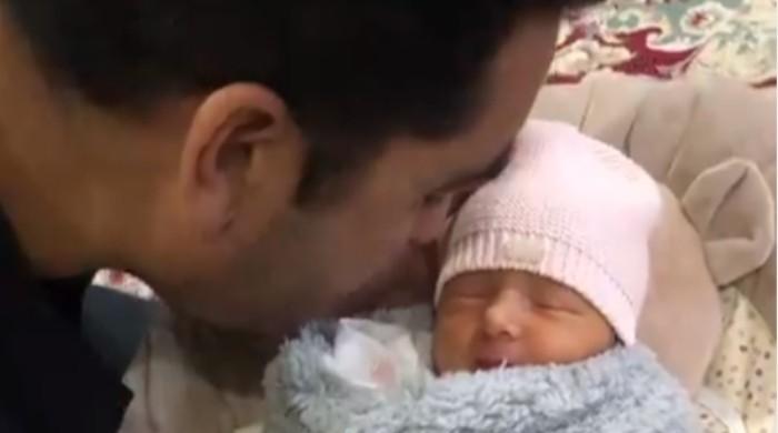 Watch: An emotional Umar Gul recites Azaan in baby daughter's ear